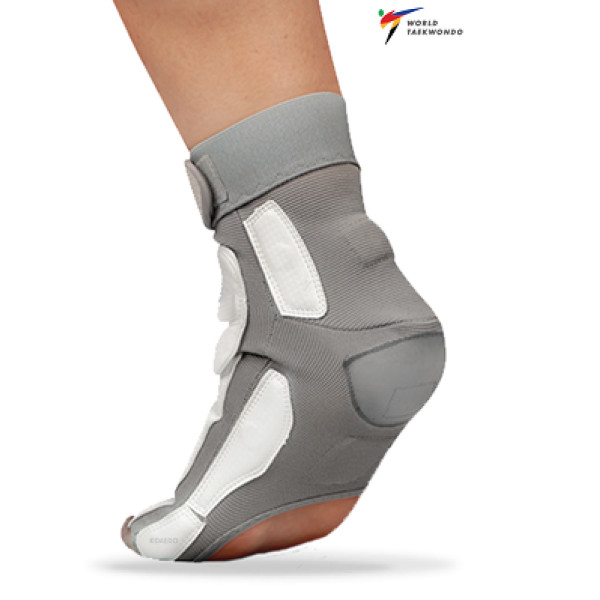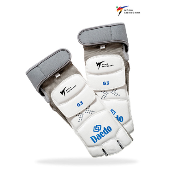 Фути від Daedo дуже зручні. Їхня задня частина виконана з еластану, який добре тягнеться, моментально відновлює свою первісну форму і щільно облягає ногу. На лицьовій частині футу передбачено шар пінистого наповнювача, який ефективно захищає від травм. Виріб виконаний у сіро-білій кольоровій гамі. Рекомендовано Світовою Федерацією Тхеквондо.